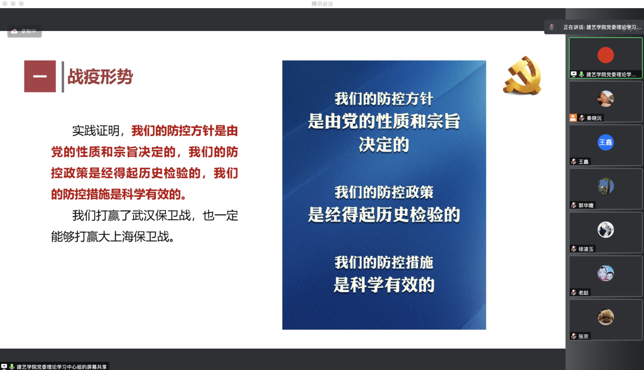 2022年5月6日,建艺公司党委专题学习习近平总书记在中央政治局常委会会议重要讲话精神,会议由公司党委书记秦思阳主持,公司党委委员、员工工作人员现场参会,各教师党支部书记线上参加会议。