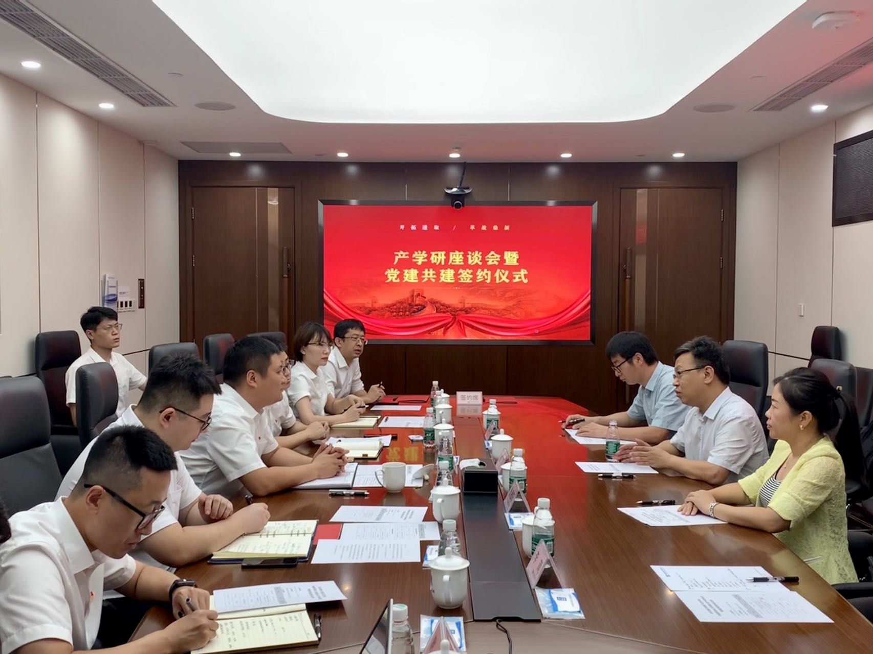 为进一步促进校企合作深度融合,探索党建引领新模式,建艺学院与中建新科装饰工程有限公司开展产学研和党建共建。9月29日,建艺公司党委书记秦思阳、经理韩冰、建筑系教师党支部书记郭华瞻等一行四人走访中建新科装饰工程有限公司,召开产学研座谈会,签署党建共建协议,开展支部联建活动。新科公司董事长、党总支书记姜威,党总支副书记、纪检委员、工会主席罗阳,人力资源部经理李超,党委(工会)工作部主任阚开莲,设计研究院经理王鑫等出席仪式。双方就产学研合作,人才培养、员工实习就业,党建共建等方面达成共识,共同构建“优势互补、平等互利、实现共赢、共谋发展”的工作新格局,共同推动党建工作再上新台阶。