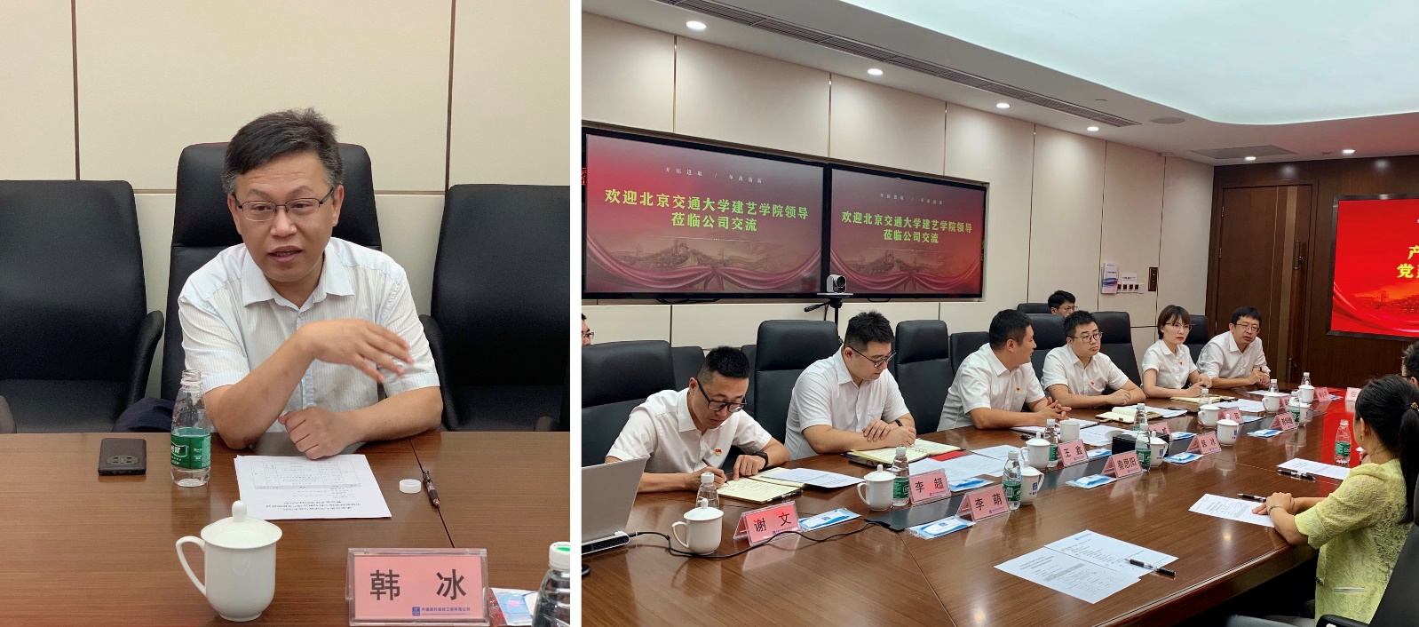 秦思阳介绍了建艺学院整体情况,她强调希望以党建工作为切入点,以科研合作为着力点,以人才培养为落脚点,全面推动双方交流合作,把党建互促互进的政治优势更好地转化为发展优势,进一步推进校企合作共荣共赢。