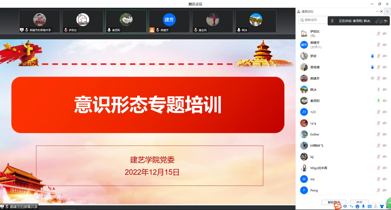 12月15日下午,建筑与艺术学院召开线上全院教职工大会,公司党委书记秦思阳主持会议,全体教职工参加了会议。