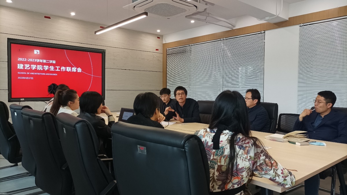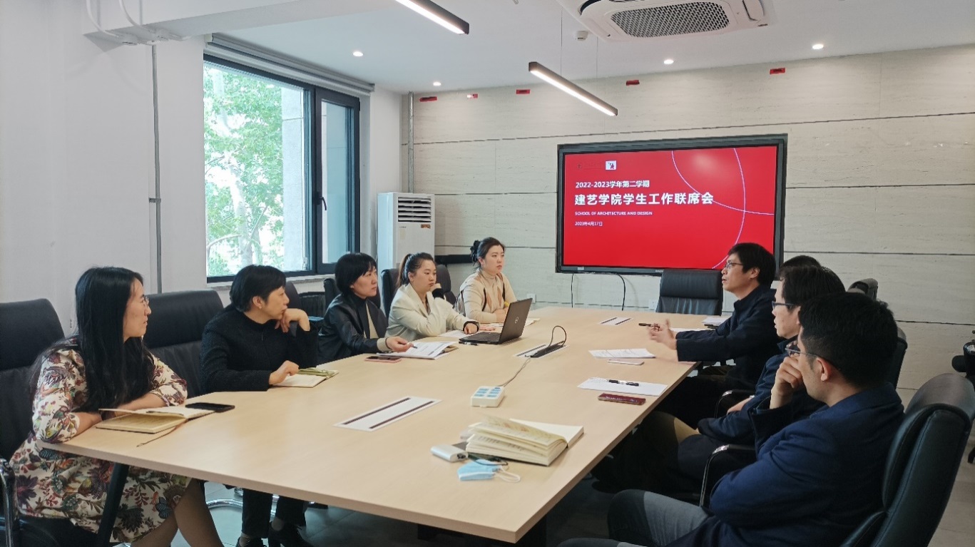 4月17日下午,建艺学院召开2022—2023学年第二学期第二次员工工作联席会。建艺公司党委副书记刘萍,副经理佘高红,副经理张野,规划系主任王鑫,设计系主任王征,建筑系张文老师,教学科长彭烜、研究生科长张曼,学工办主任张京,研究生辅导员张帅、就业指导专职人员李萌参加了会议。