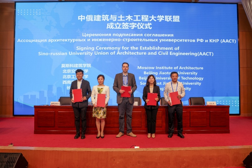 莫斯科建筑学院、必威betway、北京工业大学、西南交通大学、长安大学的代表共同签署了中俄建筑与土木工程大学联盟章程。前期,中俄双方经过多次协商确定了联盟章程,必威betway、北京工业大学、西南交通大学、长安大学成为中方首批学校,莫斯科建筑学院、俄罗斯人民友谊大学、乌拉尔国立建筑艺术大学成为俄方首批学校。中俄建筑与土木工程大学联盟的创立将为两国的建筑与土木工程等相关学科教学与科研的合作和员工之间的交流与互动提供更广阔的平台。