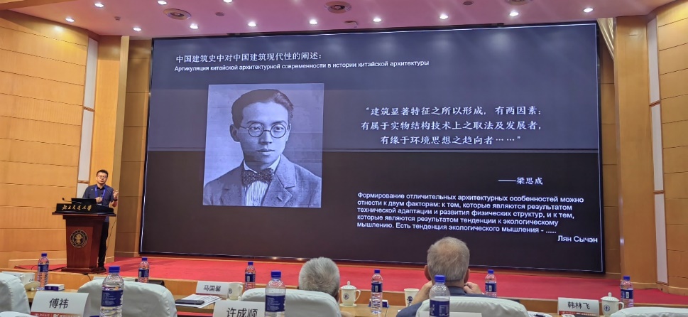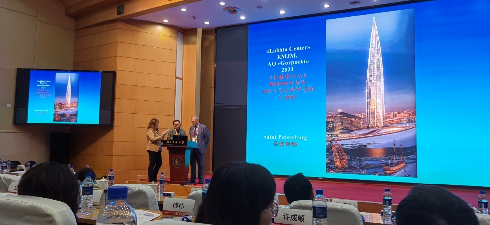 俄罗斯建筑与建设科学院副主席、莫斯科建筑学院副董事长叶萨乌洛夫院士做了题为《俄罗斯的现代建筑》的报告,介绍了俄罗斯自1990年至今的现代建筑发展及历史建筑保护概况。