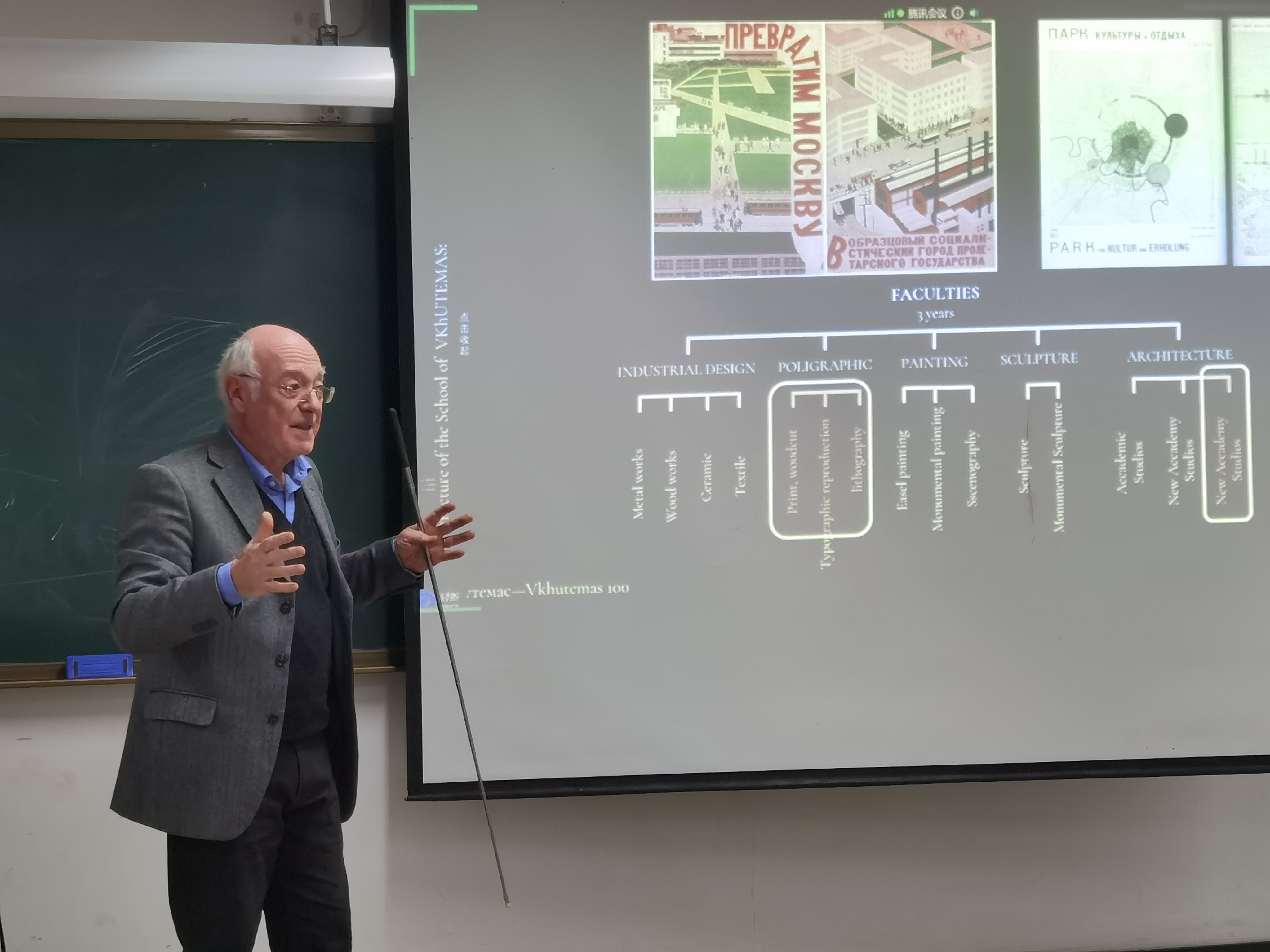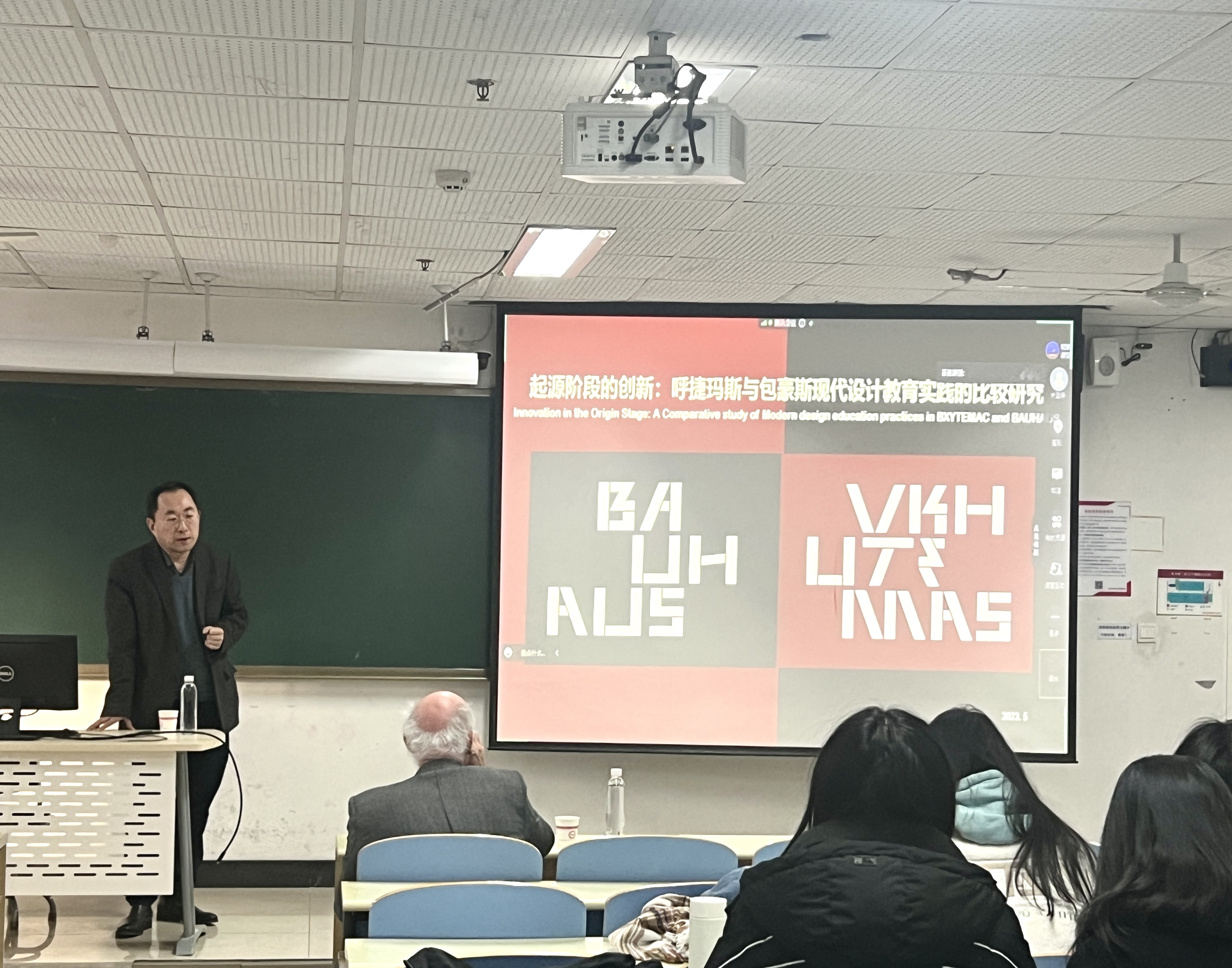 《呼捷玛斯与包豪斯》讲座中,MERIGGI教授介绍了包豪斯和呼捷玛斯两个现代建筑及艺术教育起源地的发展历程与设计变革。主要阐述包豪斯教学及理念,以及在意大利地区的发展与影响,结合设计作品向同学们展现了现代主义建筑启蒙阶段的形态,以及在意大利地区的探索。同时,韩林飞教授侧重介绍了百年呼捷玛斯的发展历程与教学思想,并结合两所学校的课程体系、员工作品等阐述在特定的时代背景下,现代建筑及艺术如何在学校教育中启蒙与发展。MERIGGI教授与韩林飞教授共同为同学们带来一场学术盛宴。讲座结束后,同学们积极提问,MERIGGI教授与同学们进行互动交流,并探讨员工提出的问题。