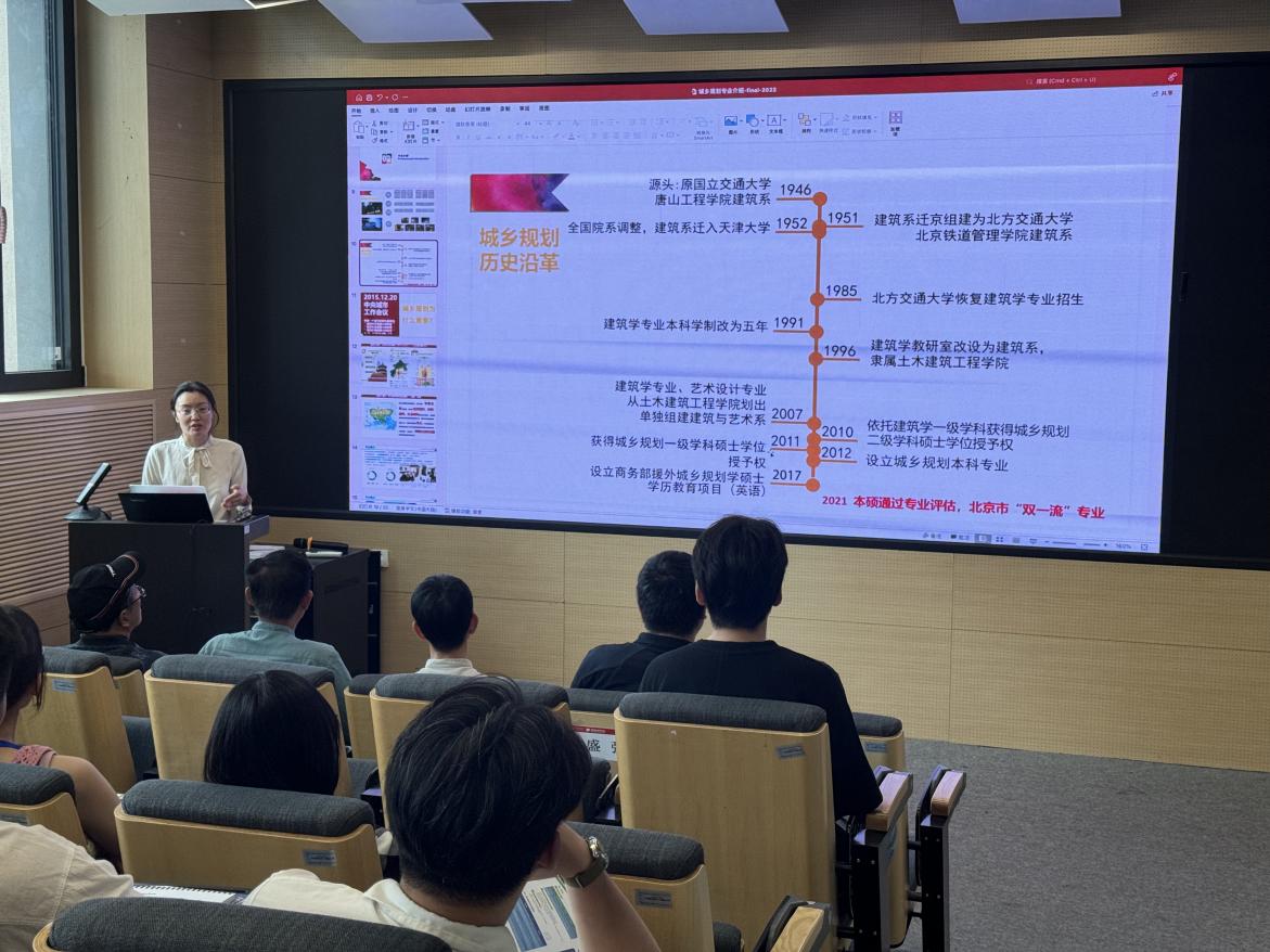 盛强介绍了建艺学院建筑学专业、城乡规划专业的发展历史、教学成果、办学理念等,强调建筑学专业在教学方面注重突出交通特色,发挥学科交叉优势,在“智慧城市”、“绿色建筑”、“遗产保护”和“数据可视化”等领域形成了多学科融合发展、特色鲜明的发展方向。