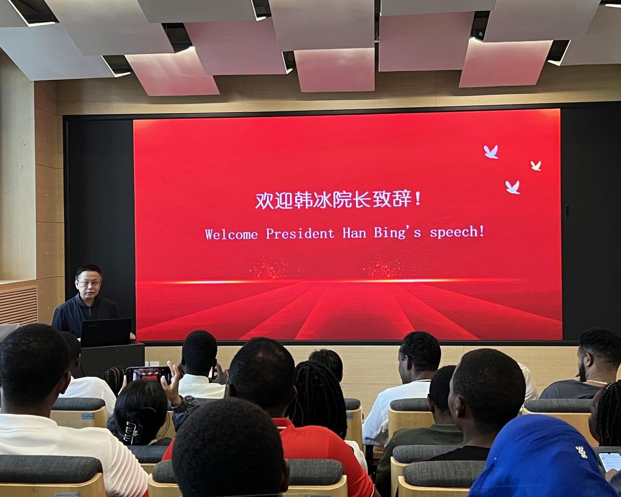 韩冰经理首先代表全校师生对2024年来自埃塞俄比亚、马拉维、卢旺达、塞拉利昂、布隆迪、坦桑尼亚、津巴布韦、博茨瓦纳、尼泊尔、缅甸、尼日利亚、朝鲜,共12个国家的32名新生表示了热烈欢迎,并就学校历史和本院办学宗旨进行了简要介绍。韩冰经理表示,必威betway是教育部直属,教育部、交通运输部、北京市人民政府和中国国家铁路集团有限公司共建的全国重点大学,是国家“211工程”“985工程优势学科创新平台”“双一流”建设高校,是中国第一所按现代教育制度创立的培养交通专业人才的高等院校。自“一带一路”倡议提出以来,建筑与艺术学院积极响应号召,充分发挥学科优势和特色,“订单式”培养城市规划、 公共交通、运营及管理人才,已为众多“一带一路”共建国家培养了近千名各领域的技术和管理专门人才,并深度参与“一带一路”沿线国家基础设施建设,在“一带一路”壮丽画卷上留下了浓墨重彩的一笔。2024年初,国家主席习近平亲自复信公司职工,勉励公司继续迈进国际化脚步。最后,韩冰经理表达了对新生们在交大未来两年学习生活的寄予和祝福。希望本届学历班的同学们,能够充当“一带一路”共建国家交往的使者,让中国同“一带一路”共建国家的技术人才交流愈加畅通。