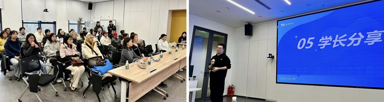 参观结束后,途游公司美术专家、建艺学院2011级艺术专业员工臧学长分享了自己职场成长经历,以及入职途游近三年的工作体会。他建议同学们积极了解行业动态,建立职业认同感,主动学习前沿技术,保持开放谦虚的态度,并通过实习实践不断调试和明确自己的就业目标。学长的分享,为同学们的专业学习和职业发展注入了满满的正能量。
