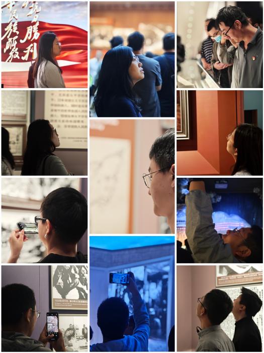 老师们怀着无比崇敬的心情认真参观了馆内的八个展厅。一件件珍贵的历史文物,一幅幅生动的图片,一段段感人的影像资料,一处处精心的陈设让所有人重温着“战争史上的奇观,中华民族的壮举,惊天动地的伟业”,全方位感受到中国人民在抗日战争中所展现出的英勇无畏、坚韧不拔的民族精神,深刻感受到从抗日战争时期的战火纷飞、山河破碎到如今的国泰民安、繁华盛世是多么来之不易!