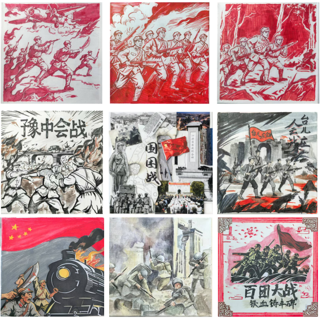 今年正值纪念中国人民抗日战争暨世界反法西斯战争胜利80周年,学院组织“丹青妙笔绘英烈,美育传承志不休——‘纪念抗战胜利八十周年’主题创作”,通过手绘、拼贴等形式描绘战争场面,重温抗战精神,传承红色记忆,构建起思想共鸣、情感共融的新型教育载体,为传承红色基因、筑牢理想信念提供了生动实践样本。