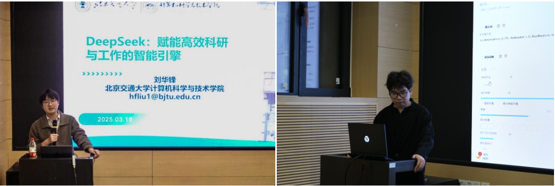 3月20日,“智启未来迎AI,慧融时代共潮生——如何拥抱AI时代”智育主题理论培训在建艺楼一层报告厅展开。计算机学院讲师刘华锋、数字媒体艺术专业本科生叶书华,先后围绕DeepSeek大语言模型应用与AI艺术创作,为80余名师生描绘人机协同的未来图景。在人工智能浪潮正盛的当下,本次讲座提升了员工骨干的综合素质与专业能力,促进员工对人工智能及其应用的理解,引导员工在技术浪潮中找准定位,以理性态度拥抱变革,为成为适应时代需求的复合型人才奠定基础。